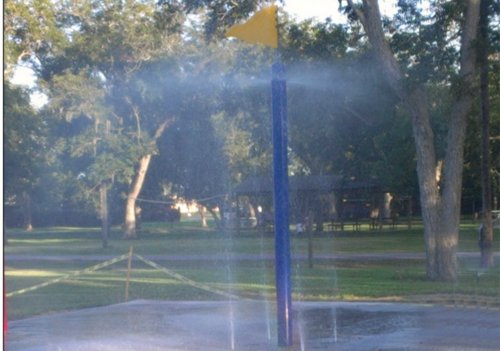 Flag Spray Interactive water feature 11′-6″ to top of flag Beautiful protective powder coat finish in a wide array of colors. Above Ground Features