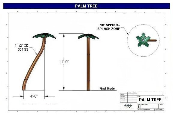 Palm Tree 11′ Tall, All stainless steel palm tree. 4′ Offset. Beautiful protective powder coat finish in a wide array of colors. Above Ground Features