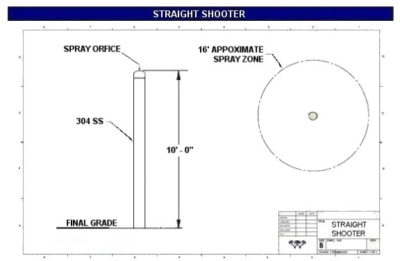 Straight Shooter Adjustable stream of water shoots from top of feature. 10′ Tall 3″ OD, 4 1/2″ OD or 6 5/8″ OD Stainless Steel Beautiful protective powder coat finish in a wide array of colors Above Ground Features