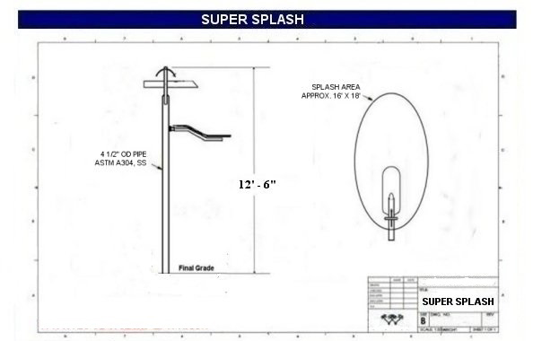 Super Splash Kid’s favorite!!! 12′ Tall Up to 18′ Circle Water spills onto a deflector making a SUPER SPLASH! Beautiful protective powder coat finish in a wide array of colors Above Ground Features